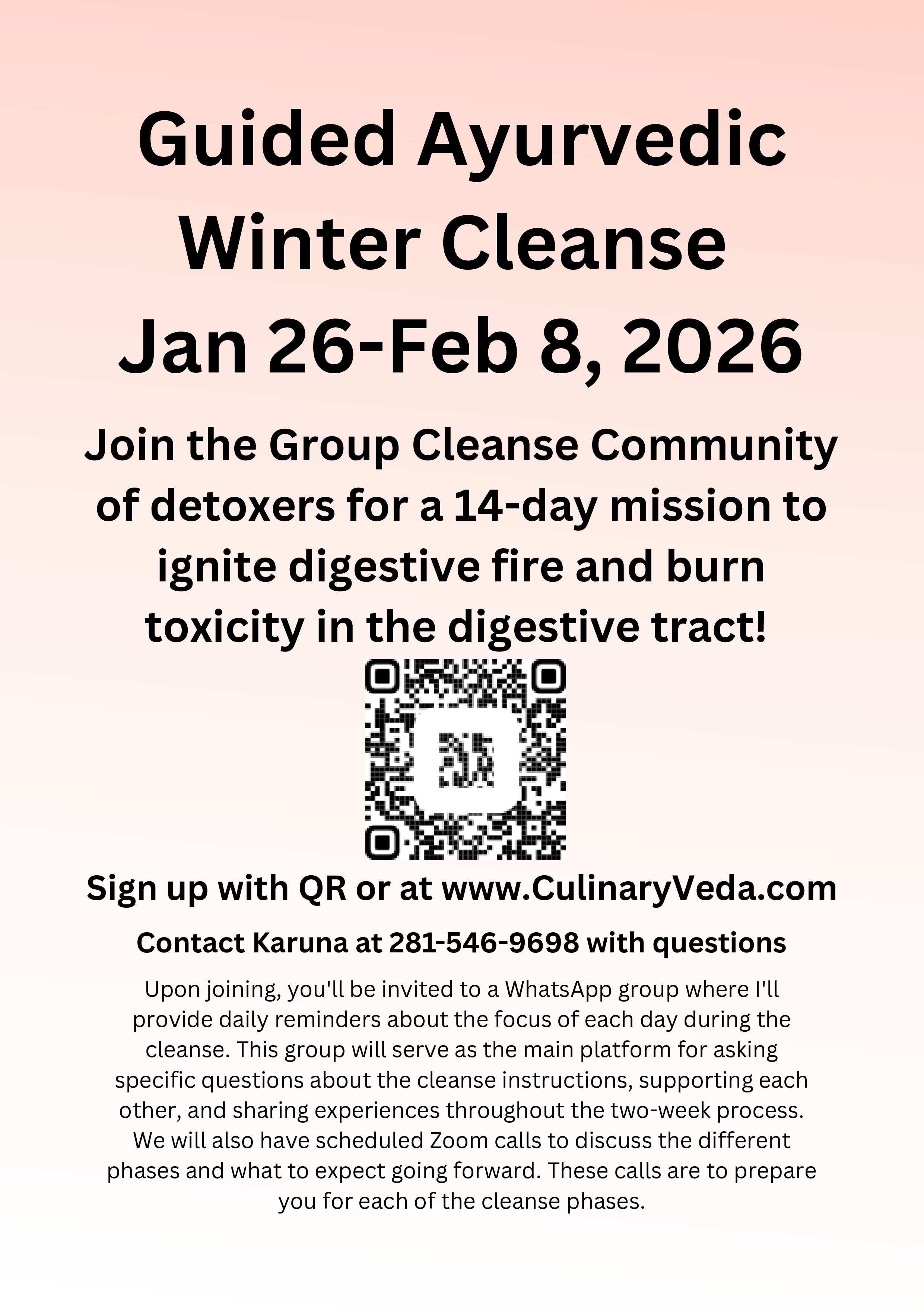 Previously, she launched Karuna’s Kitchen, a plant-based meal service rooted in Ayurvedic nutrition, which became a trusted source of nourishing, intentional food in the Houston wellness community. Today, through Culinary Veda, she continues her mission to make Ayurvedic healing accessible and sustainable, helping others find balance, vitality, and connection through the power of food and daily ritual.